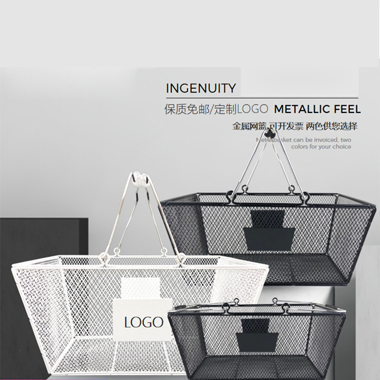 金属のスーパーマーケットの買い物かごの手提げ化粧品の収納かごの文房具の逸品の間食の薬局の鉄芸ネットの赤い枠