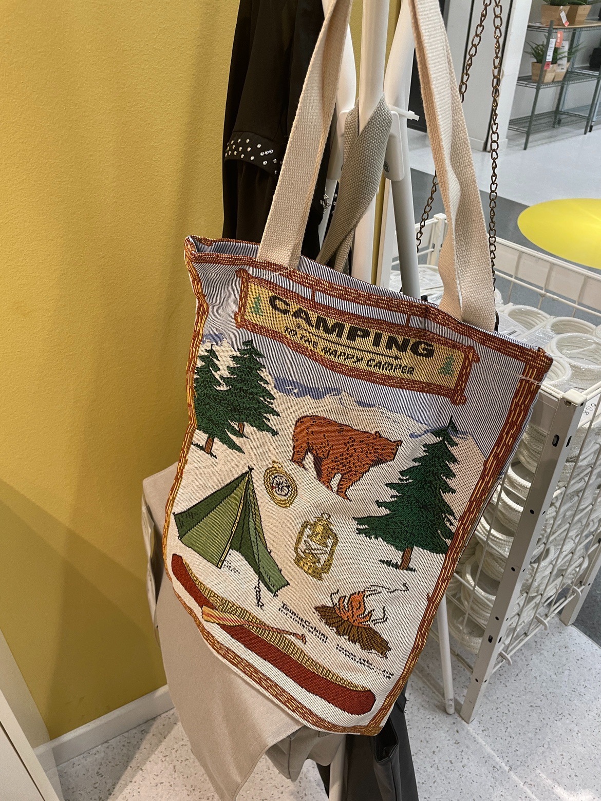 山系アウトドアキャンプトートバッグジャカードレジ袋飾りアメリカ文房具店Cavallini