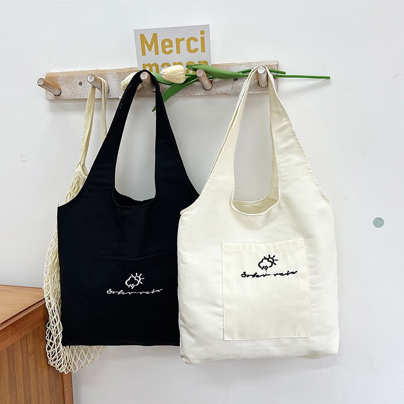 メーカー直販刺繍怠惰風キャンバス環境保護布袋シングル肩斜めショルダーバッグ手提げ学生女子カバンレジ袋