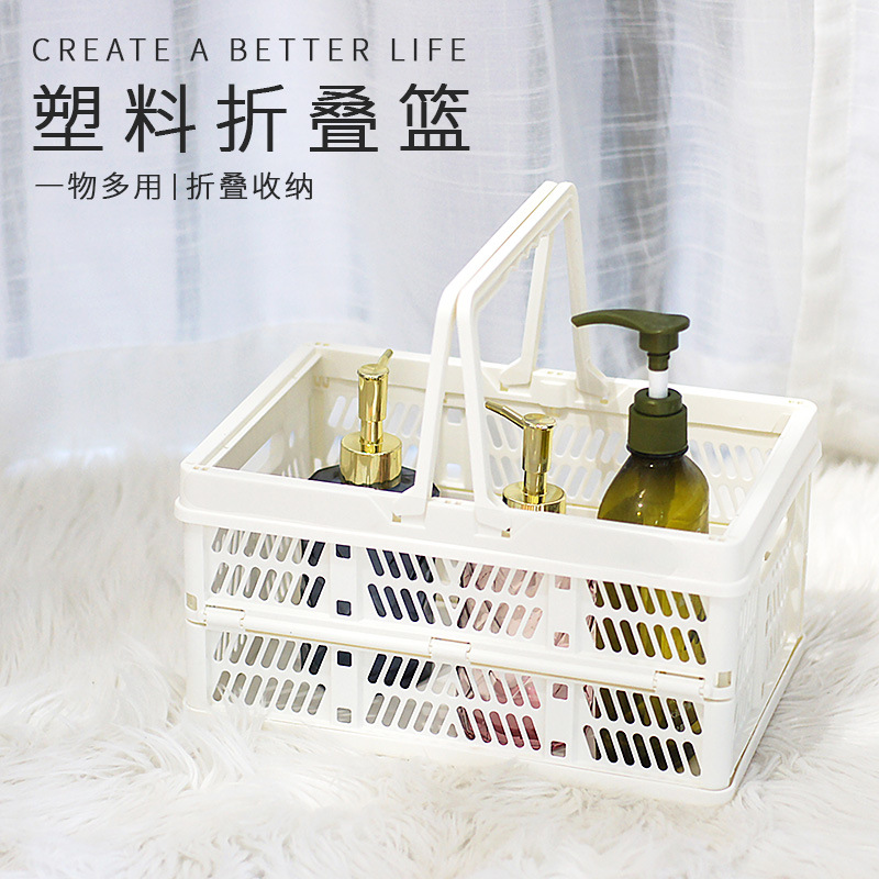 折りたたみ可能なスーパーマーケットの買い物かご手提げプラスチックかご蓋付きデスクトップ文房具収納かご携帯ピクニック果物かご