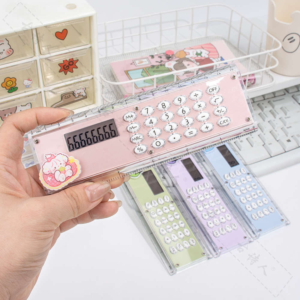 クリエイティブな漫画定規電卓、学用品、子供と学生向けのミニ電卓、キュートで見栄えの良いコンピューター