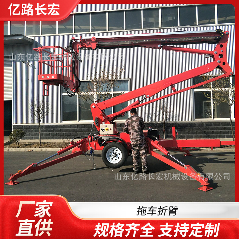 トレーラーアーム牽引式キャタピラー折り畳みアーム昇降機工事現場ガラス工事高所作業プラットフォーム
