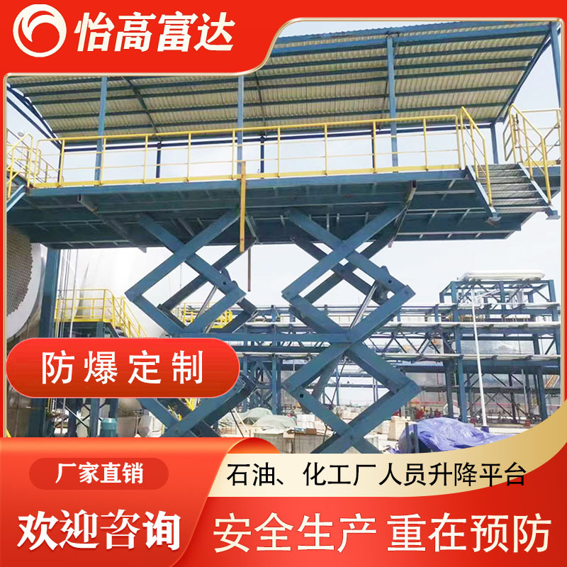 化学工場用防爆人員昇降プラットフォーム、大型石油精製工場用重量物固定シザーフォークリフト