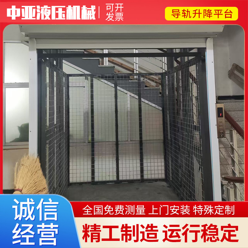 大型油圧昇降貨物エレベーター 2階工場用レール式電動昇降プラットフォーム 固定式貨物エレベーター