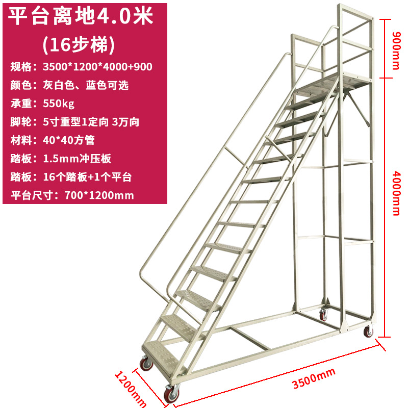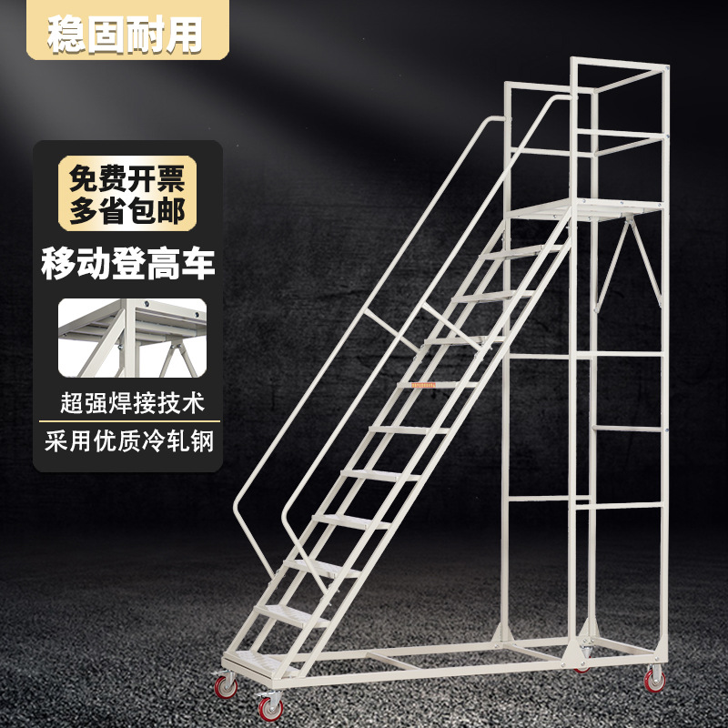 車輪の上のプラットフォームの材料倉庫の倉庫車は移動して貨物のはしごを装飾します。
