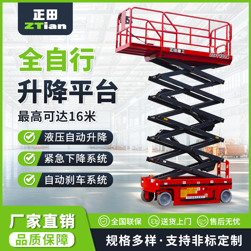 全自走式シザーリフト 12mリフト 財産メンテナンス工場建設 移動式高所作業車 10m