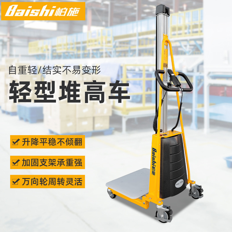 上海 Baishi ミニ電動フォークリフト油圧リフティングハンドトラック軽量スタッカー
