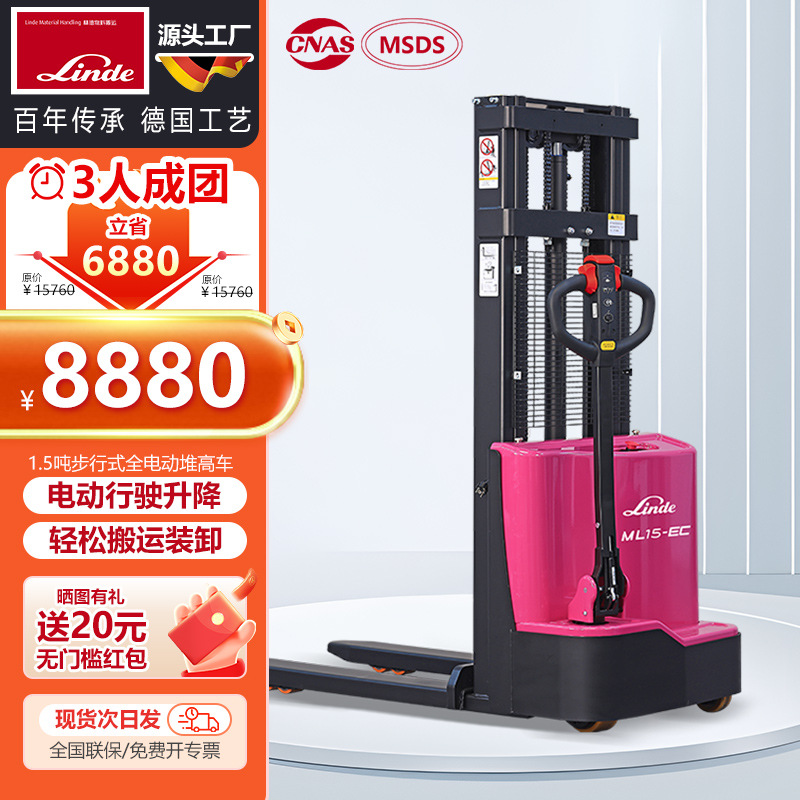 林徳全電動フォークリフト1.5トン歩行式油圧スタッカ昇降荷役車パレットスタッカ
