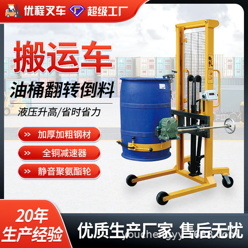 優程フォークリフトのドラム缶が高くなって材料車のドラム缶を積み下ろして車の鉄桶のプラスチックのドラム缶を運びます。