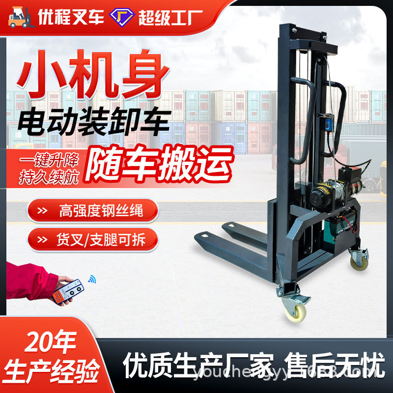 小型ポータブル半電動・全電動車載フォークリフト、セルフリフトスタッカー、昇降・荷降ろし・運搬用電動フォークリフト