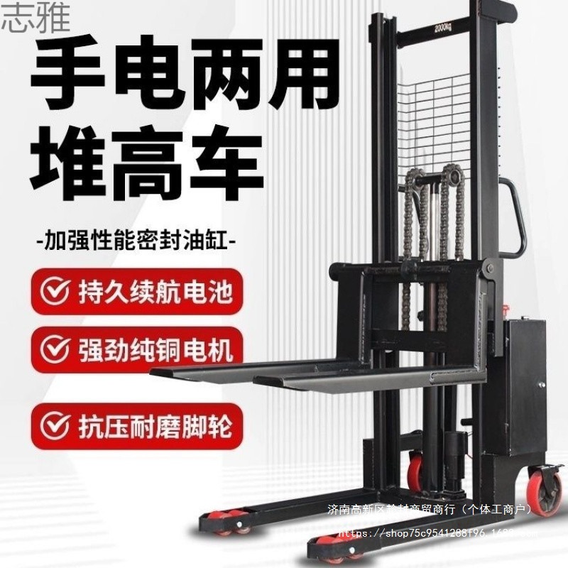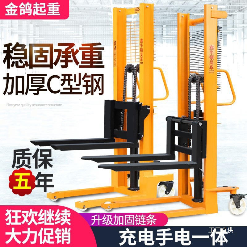 手動フォークリフト 2トン 1トン 貨物積み降ろしフォークリフト 兼用スタッカー 220v 半電動 家庭用リフト 電動スタッカー Junxia