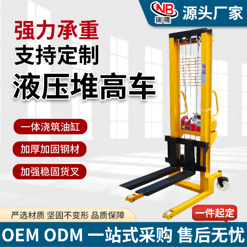 工場保管貨物スタッキング装置 油圧手押し貨物移送車 半自動昇降フォークリフト