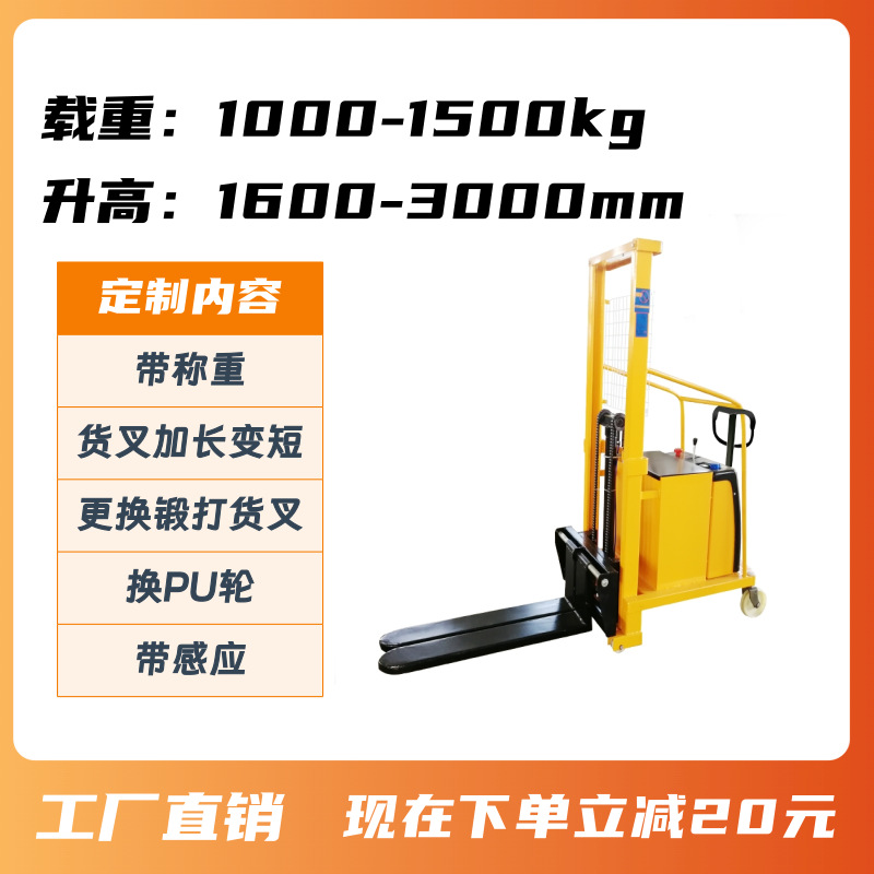 至力電動フォークリフトパレットスタッカ油圧荷役運搬スタッカ昇降高フォークリフト駅運転1.5/2t