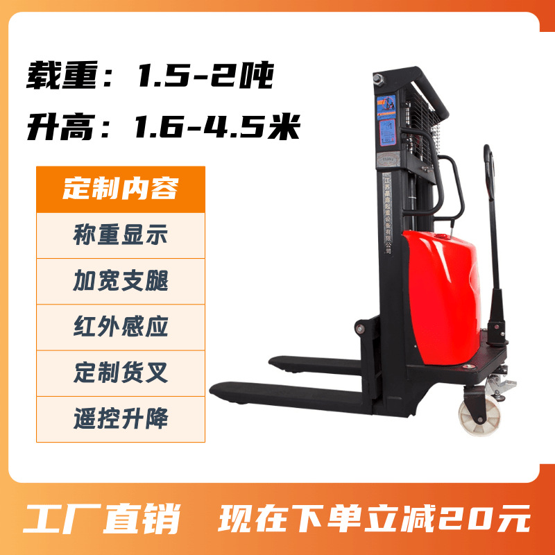 新型半電動スタッカ電動昇降フォークリフト2t半電動リフト車手押し電気リフト車
