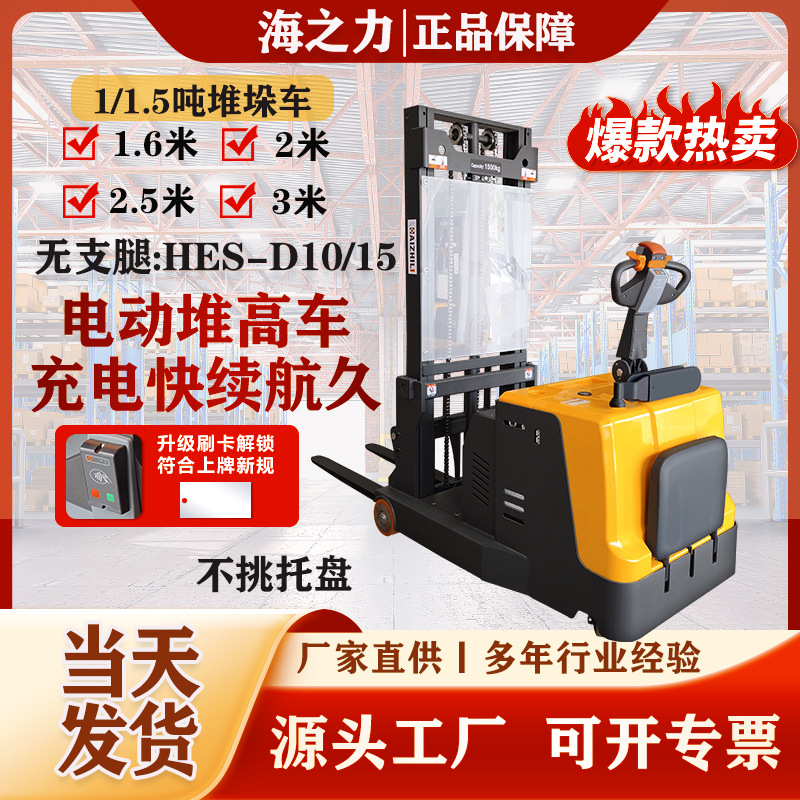 Hai Li Zhi ダブルリフト 2T 電動スタッカーフォーク フォーク ライドオン全電動フォークリフト 1.5T 油圧フォークリフト卸売