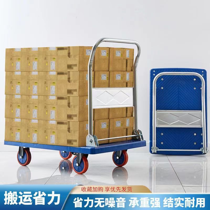 手押し車台車プラスチックスーパー台車ポータブル折り畳み静音トレーラー倉庫牽引品製造卸売り