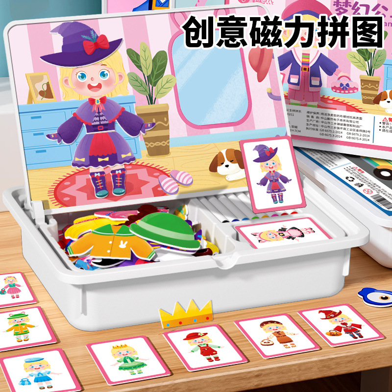 子供向け知育磁気パズル、磁気ステッカー着せ替え、3~6歳向け幼稚園おもちゃ、楽しい漫画パズル