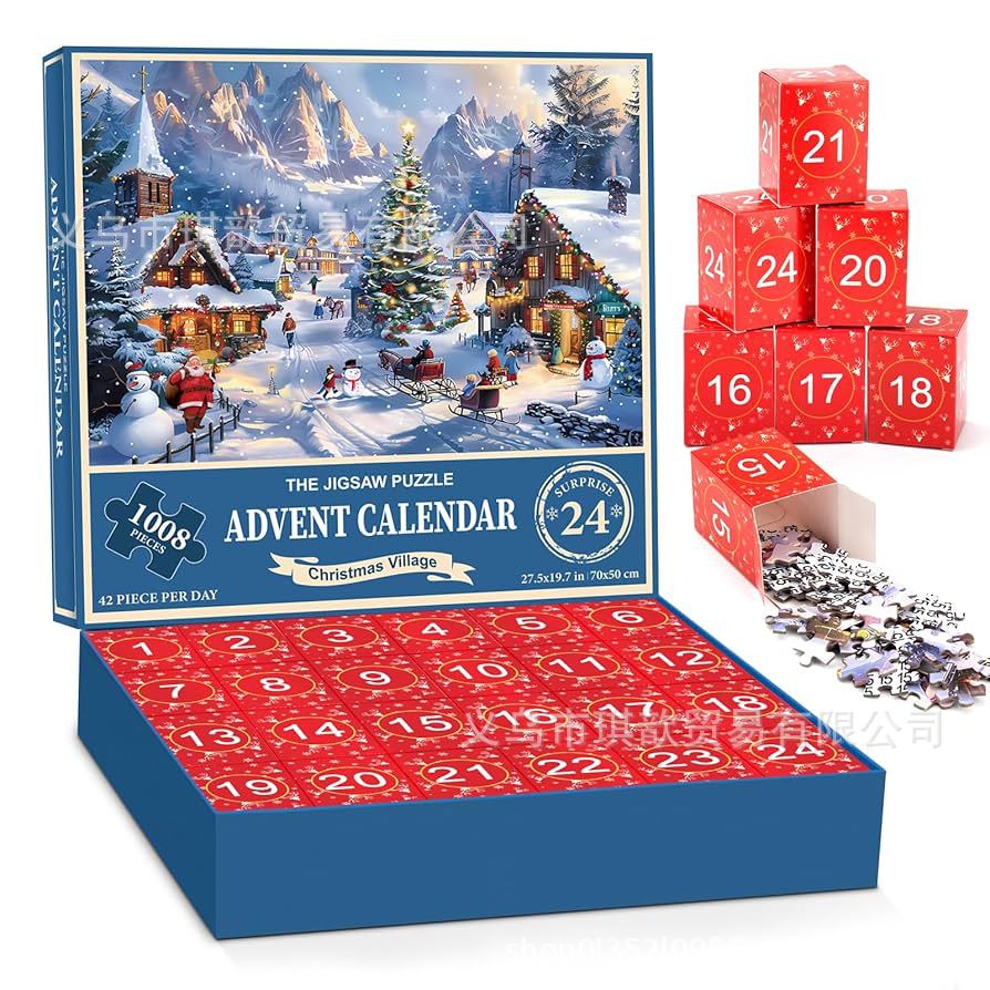 2025年クリスマスカウントダウンクロスボーダーブラインドボックス1008ピースクリエイティブパズルおもちゃ紙製知育玩具メーカー卸売