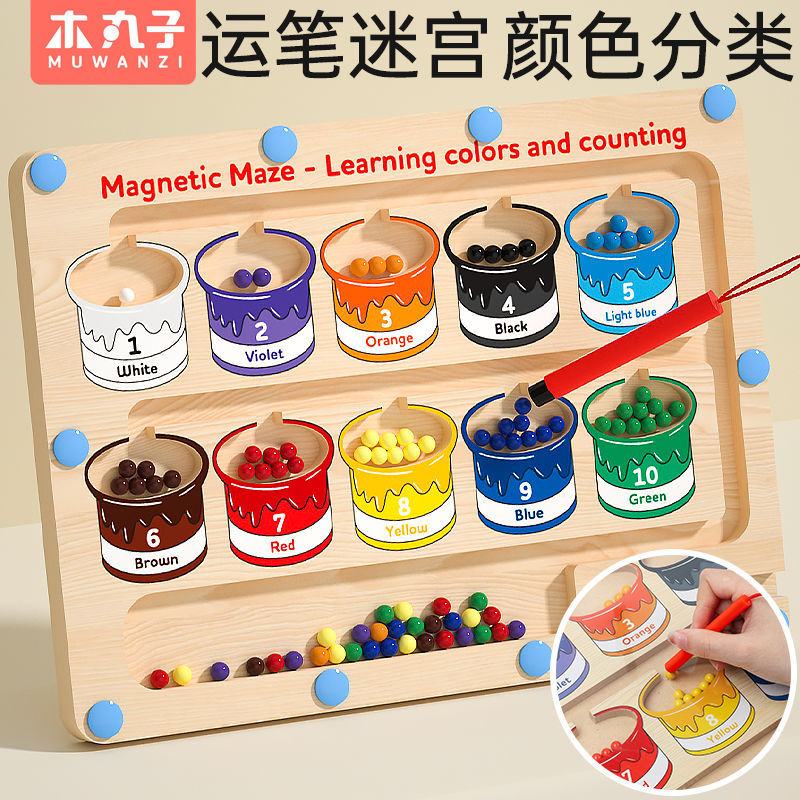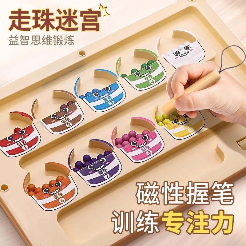 クロスボーダー児童画板色分類磁気ペン走珠磁気輸送ペン移動ゲーム知育早教玩具
