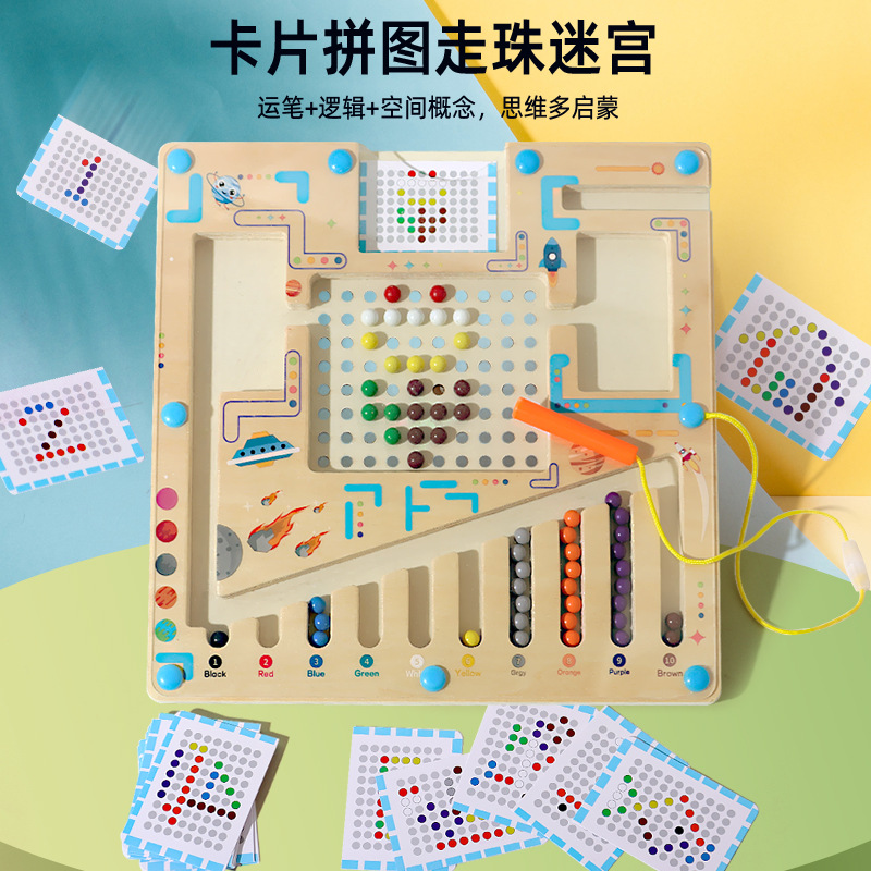 子供の木製磁気ビーズペン迷路早期教育マッチングデジタル思考トレーニング知育玩具卸売