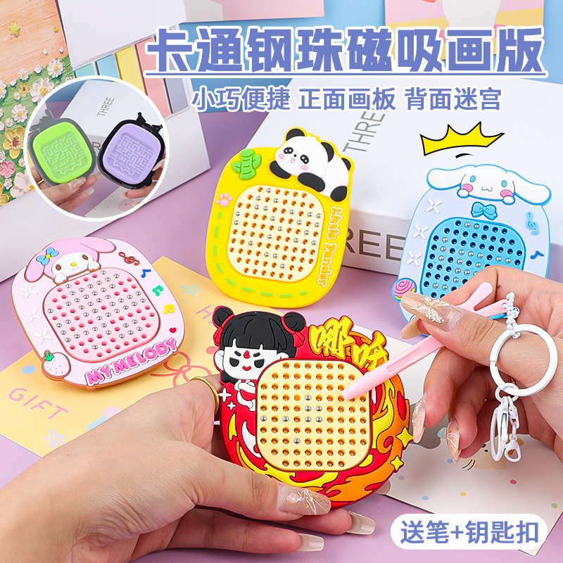 子供のクリエイティブ漫画減圧磁気鋼球教育製図ボードキーホルダーペンダント迷路キーチェーン屋台卸売