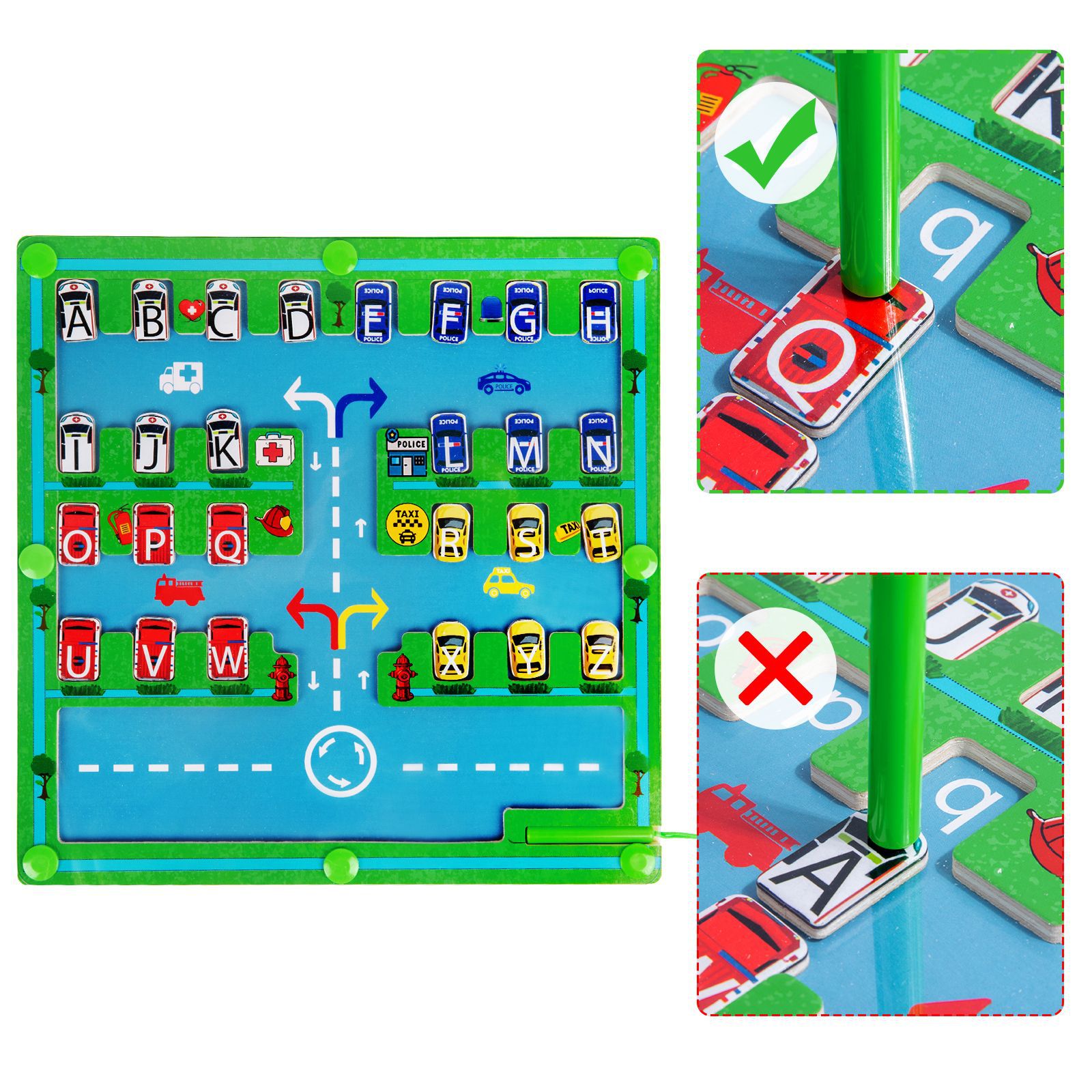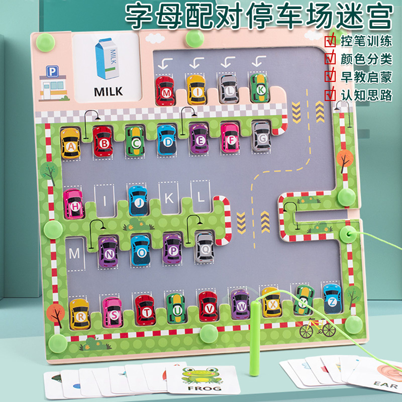 子供の磁気駐車のアルファベットは迷宮のゲームの色をペアにします。