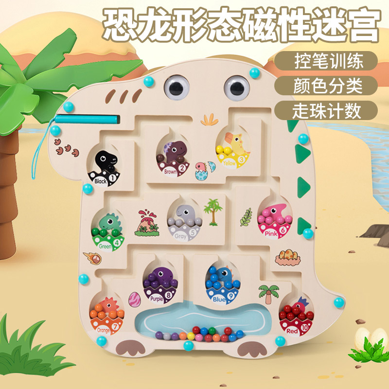 CPC磁気迷宮走珠玩具木質児童益智磁気恐竜運筆色ペアメーカー卸売り