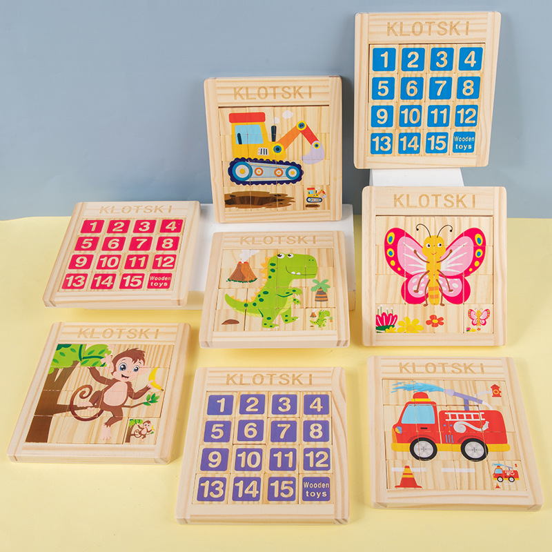 クロスボーダー子供両面漫画デジタル華容道パズル早教知育啓蒙認知木製玩具卸売り