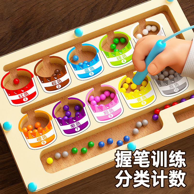磁気迷宮走珠玩具デジタル色分類蒙氏早教幼児知育3歳から6歳までの思考訓練