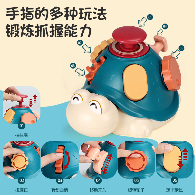 カメは指のおもちゃの赤ちゃんを探求して手の精密な動作を鍛えます。