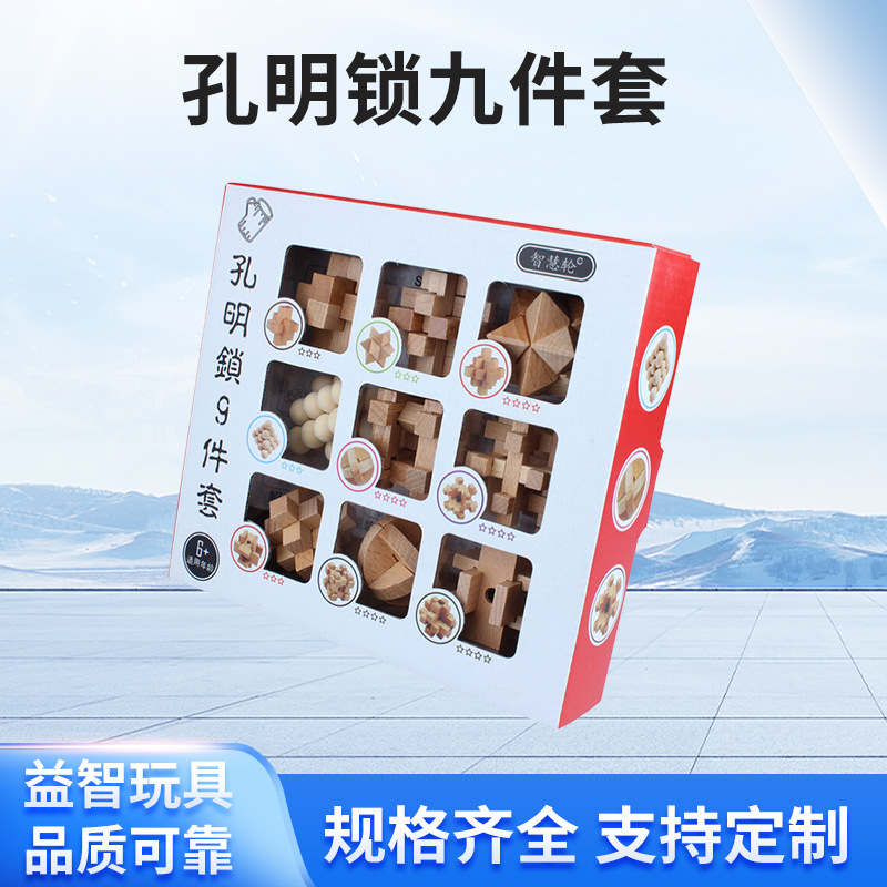 孔明錠魯班錠9点セット小学生益智玩具知能高難度収納玄機箱セットクロスボーダー