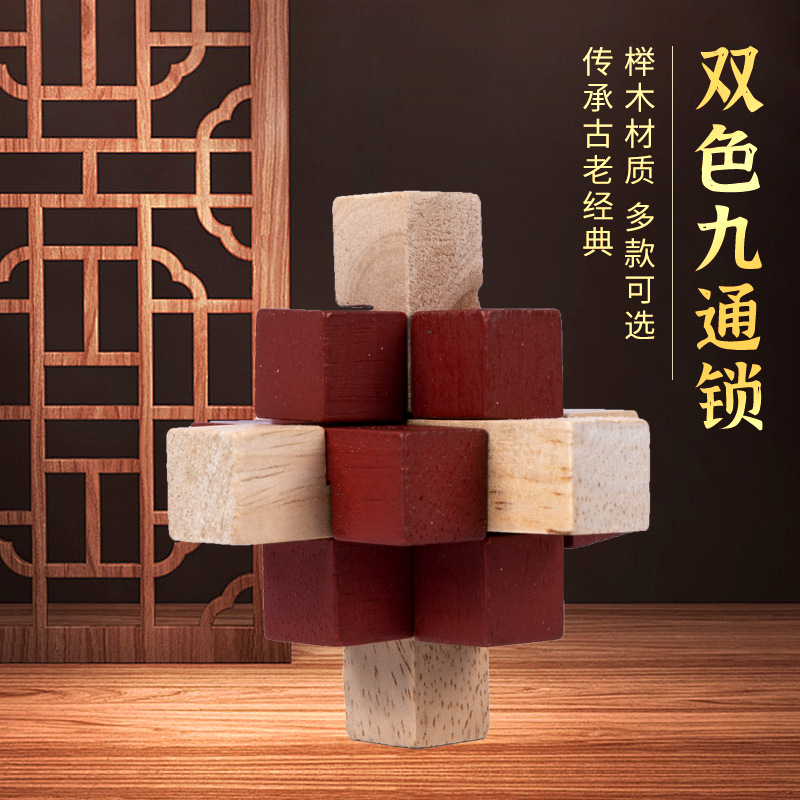 木製益智玩具成人益智孔明錠魯班錠シリーズ十五通