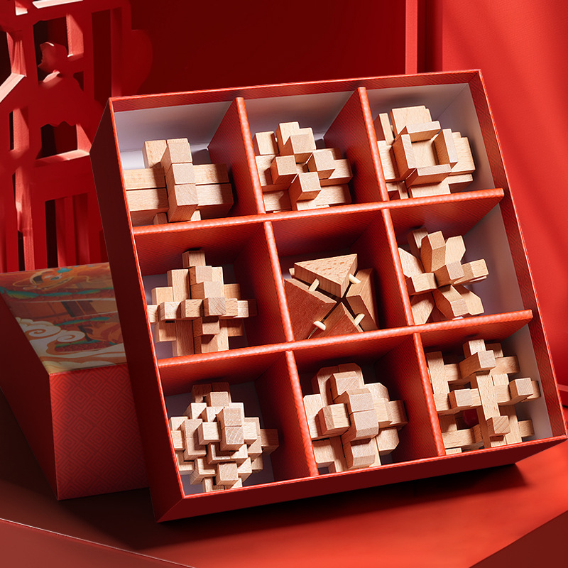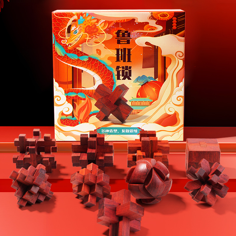 子供の益智類の赤い木の国の潮の贈り物のほぞ卯の孔明錠の魯班は全セットの木の歳のセットのギフトボックスのおもちゃをロックします。