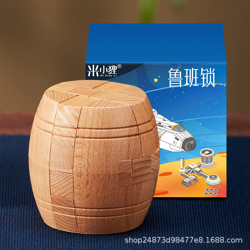 酒桶経典児童成人益智玩具単一ケヤキ魯班錠木製高難度焼脳孔明錠