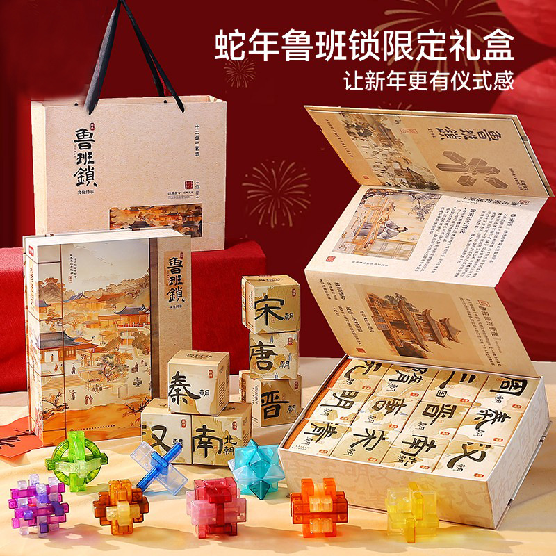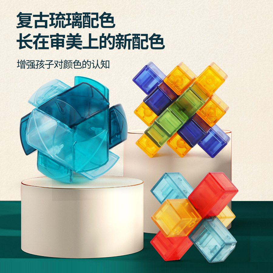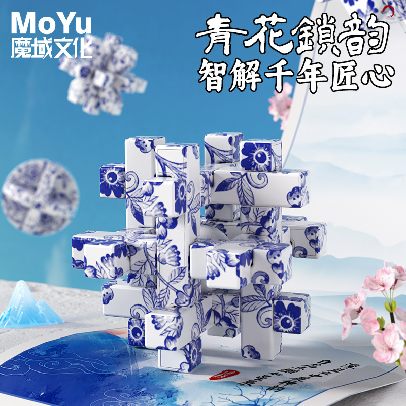 魔域国風青花磁器益智魯班錠立体組立ロック解除ほぞ卯構造孔明錠玩具カラーボックス