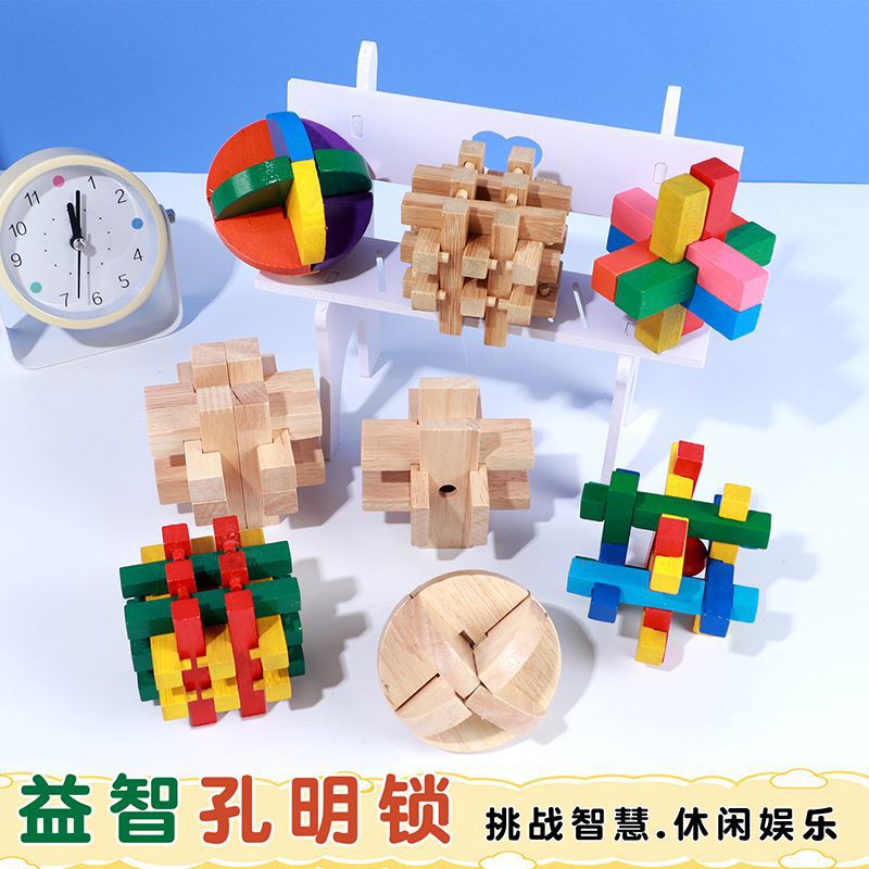 魔域木質色孔明錠魯班錠フルセットロック解除子供論理思考早教益智玩具