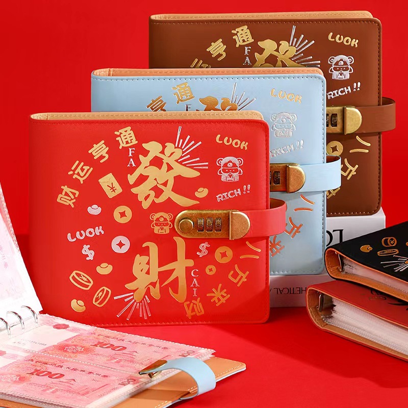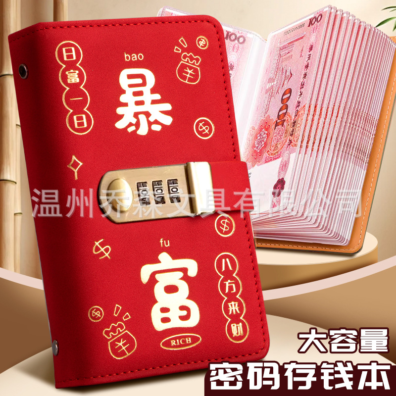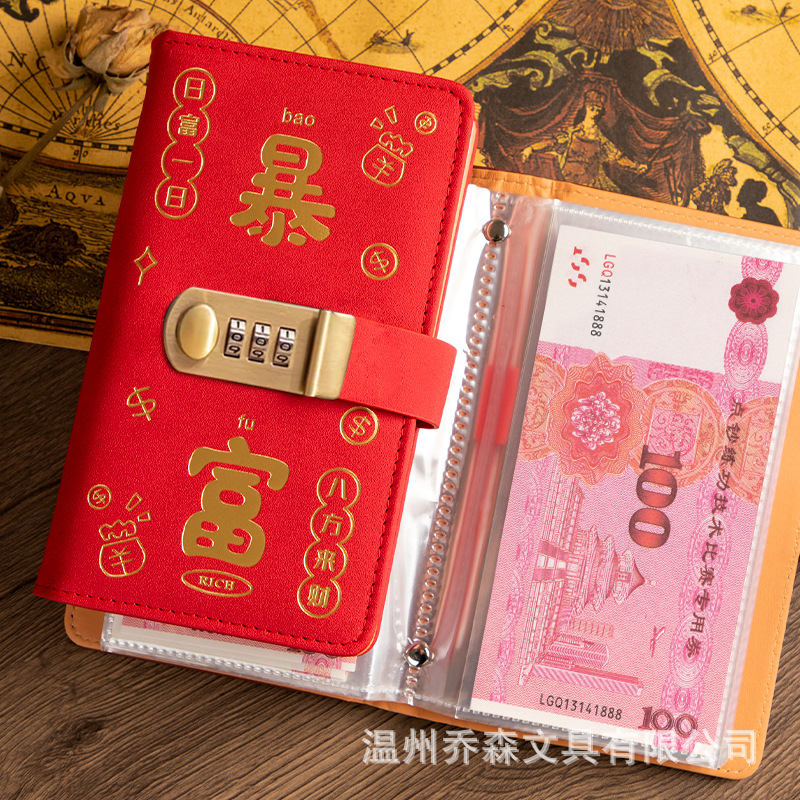 現物ネット赤爆金現金預金本収納帳暗号ロック大容量暴富預金財布資産管理帳