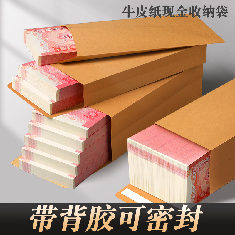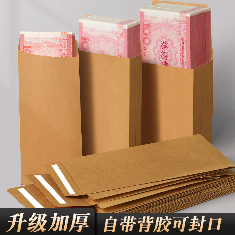 厚手封筒袋多額の現金袋にボーナスを出すクラフト紙袋にお金袋の空白の給料袋にお金を入れる紙袋