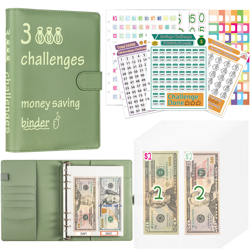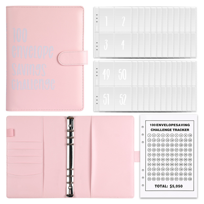 100 envelopechallenge100日間お金を節約して貯金します。現金封筒の保存本のルーズリーフに挑戦します。