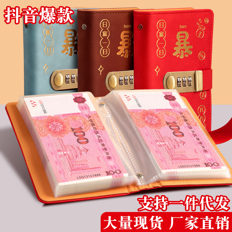 新型暗証番号ロック現金貯金本大容量資産管理防水記念紙幣収納帳紙幣貯金卸売り