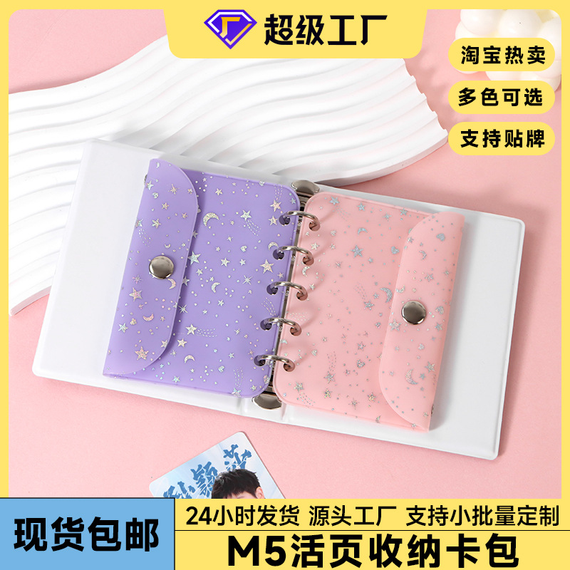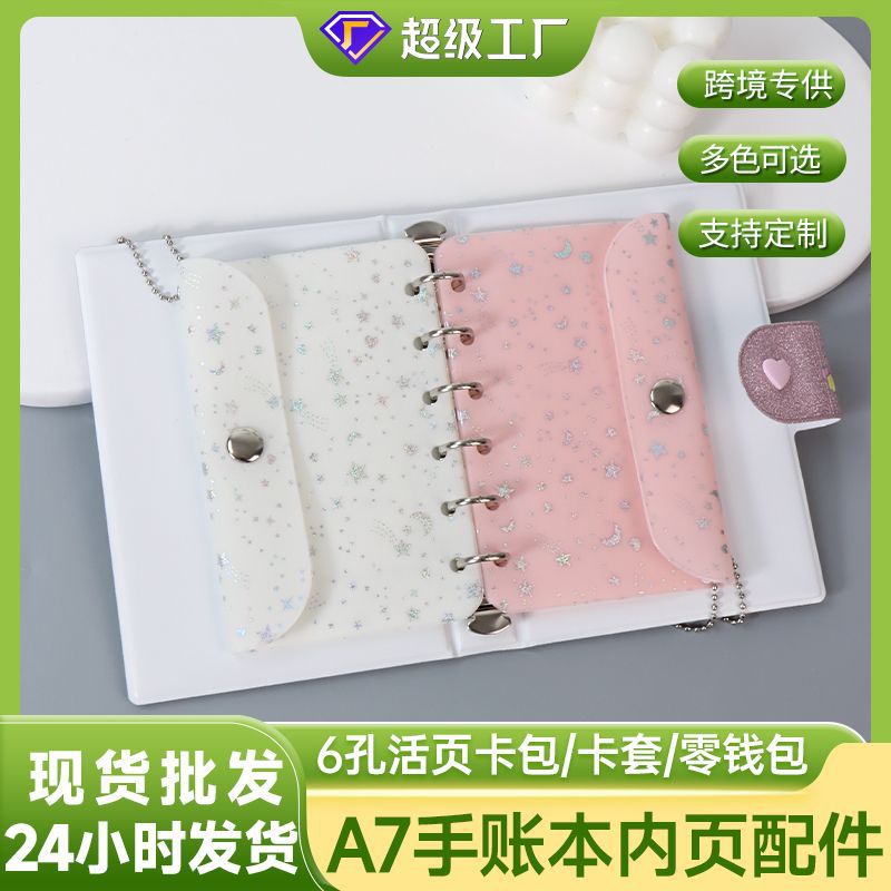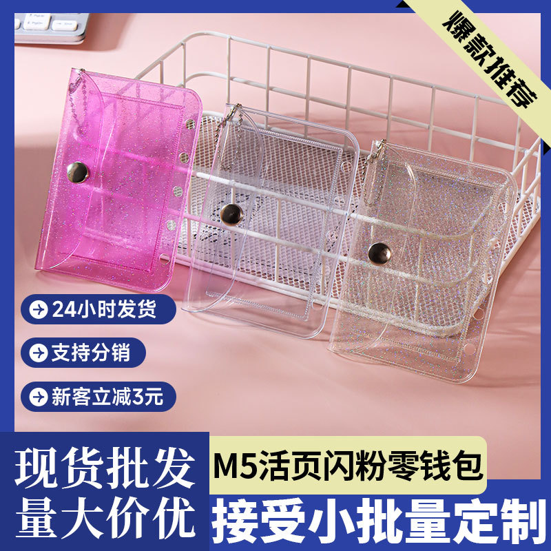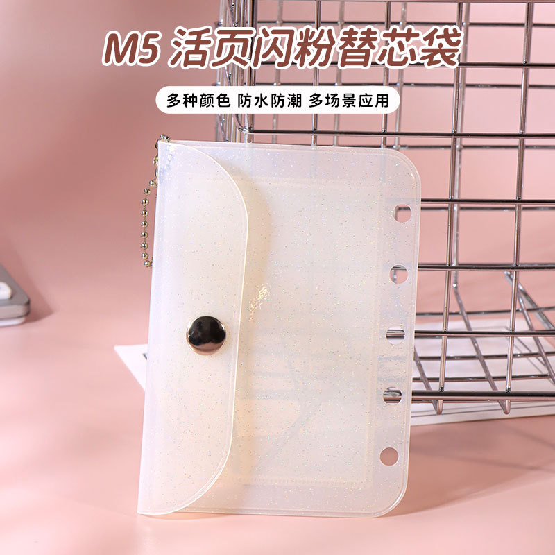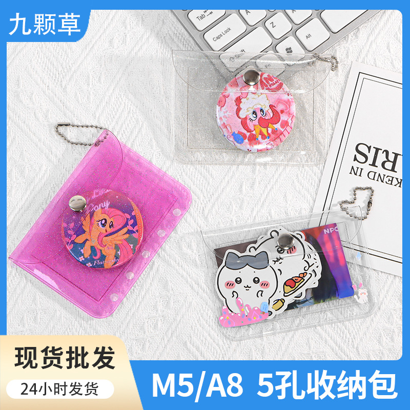 Ins風A8M5五穴バインダーカードカバーPVC透明フラッシュ粉小清新収納手帳交換芯カードバッグ現物