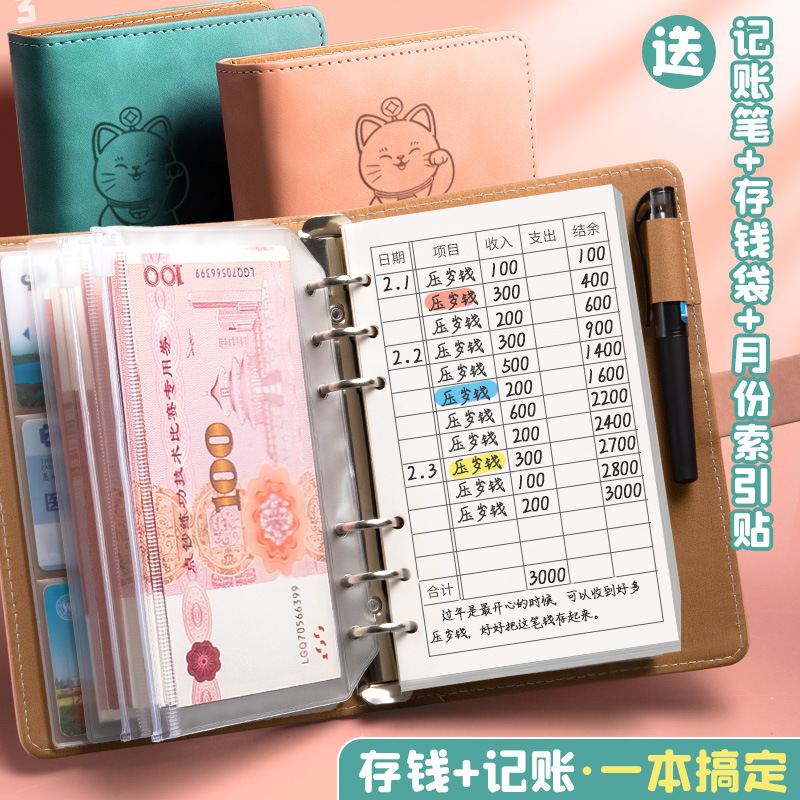 2025新型現金貯金帳貯金帳現金収納帳記帳帳にお金を貯めてお札を入れることができます。