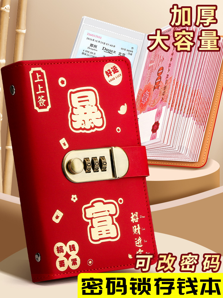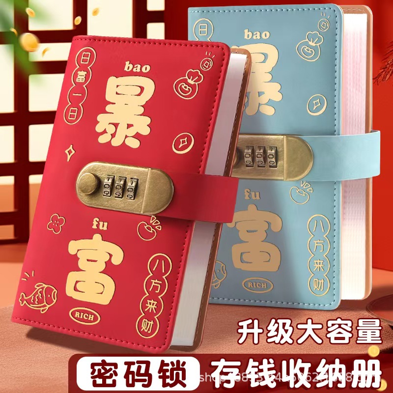 現金貯金帳 2025 新しい貯金財布お金帳ブックリッチパスワードロック財布は現金を収集するための大容量を収納できます