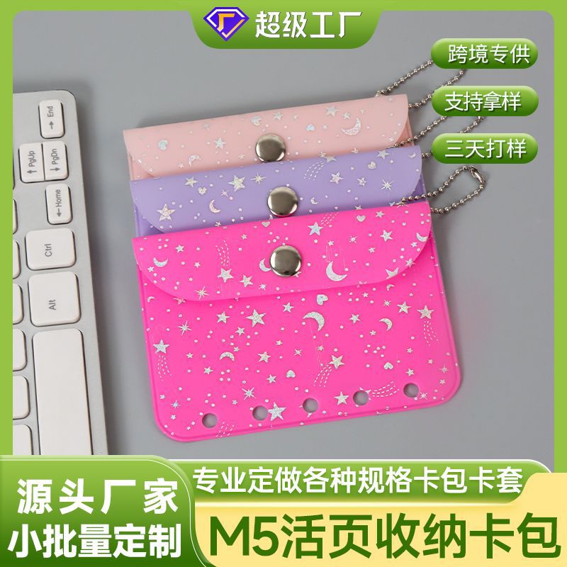 送料無料 M5 ルーズリーフブック交換用コアバッグカラフルなガーリーハート星空小銭入れポータブル小さなバッグ PVC カードバッグを掛けることができます