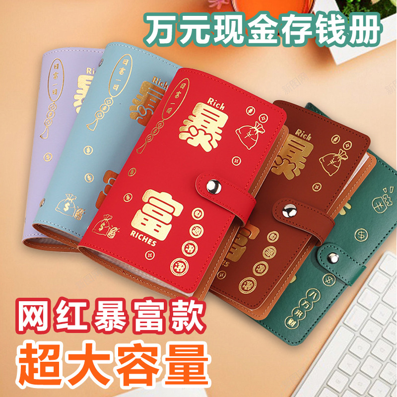 2025新型ネット紅貯金帳は現金貯金帳の大容量収納本万元貯金書を入れることができる
