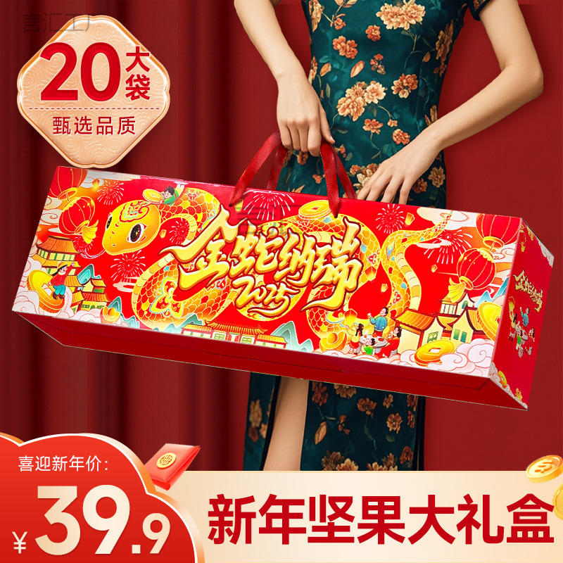ナッツ蛇年礼箱贈答品年品大ギフトバッグ目上の人のドライフルーツ間食は親戚の箱全体の混合卸売りを行った