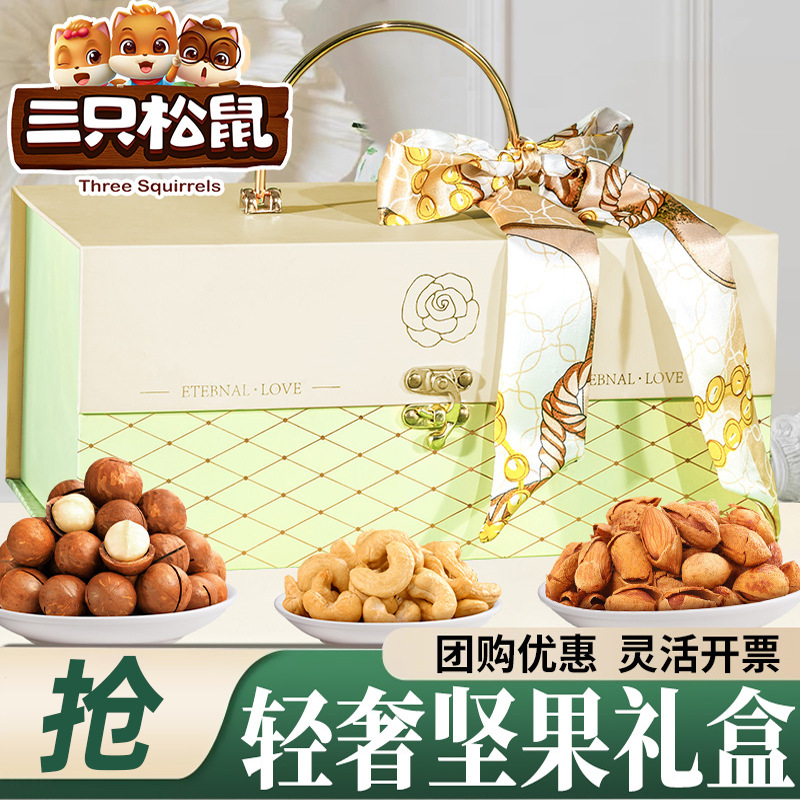 【リス3匹缶ナッツギフトケース1210g/6缶】年長者の間食ギフトバッグのドライフルーツをプレゼントする