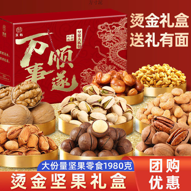 【ナッツ礼箱大ギフトバッグ】年物ドライフルーツ特産品カジュアルスナック一箱に年越し贈答品卸売り