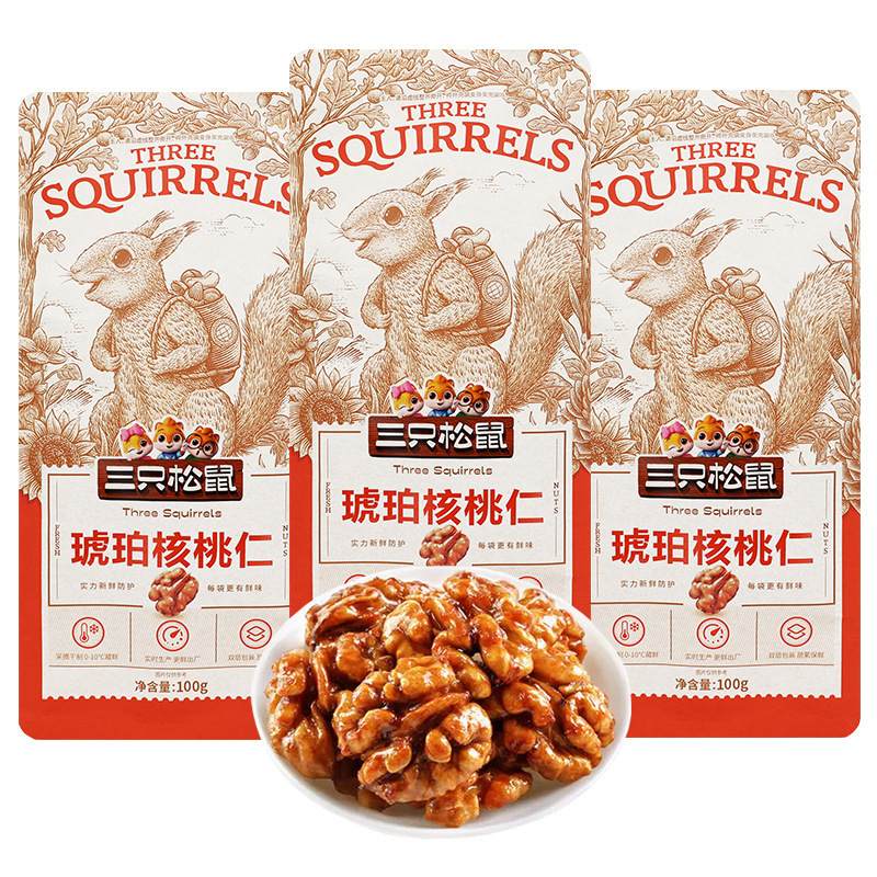 ドロップシッピング 3 つのリス琥珀クルミ粒 100 グラム袋入りすぐに食べられる蜂蜜風味のスナックナッツすぐに食べられる送料無料