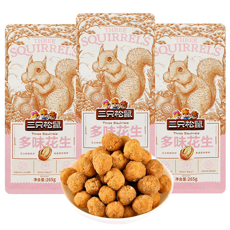 3匹のリスの多味の落花生の75gを代行して商品を炒めます。